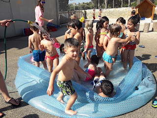 Avui, per acomiadar-nos de l'escola i passar un dia ben divertit hem fet una festa de l'aigua, on hem nedat a una piscineta, ens hem banyat amb les mànegues, hem jugat amb els ribells i per acabar hem menjat un gelat.